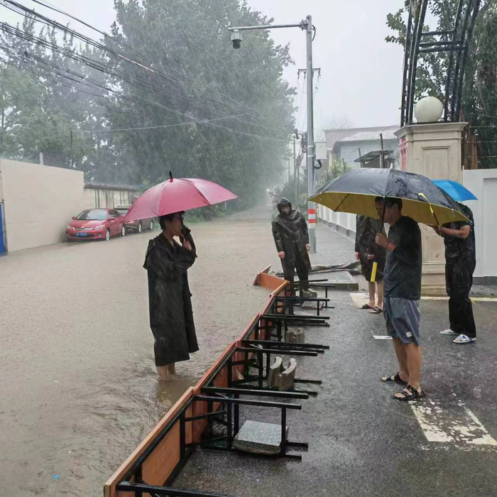 据了解,该小区由善海北里社区居委会代管。因之前便了解积水是该小区的“老毛病”,自7月28日一早起,直至暴雨停歇、积水消退,属地魏善庄镇及善海北里社区相关负责人始终坚守在防汛一线。连日来,社区工作人员在该小区业主代表微信群中,及时告知大家镇里对积水的应对措施,阐明管道疏通、电力维修及重点积水点位警示等情况,以缓解大家的焦虑。