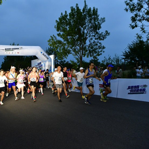 19点,发令枪声。跑友们冲过起跑线,奔向如绿海般的公园里。大家头戴荧光环、手持荧光棒,在公园内纷纷打卡5.4公里的星形园路,通通来运动,共同为活动谱写下美好回忆。
