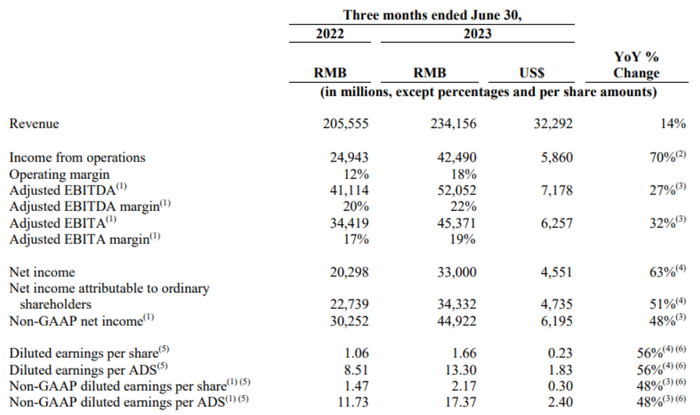 阿里巴巴2024财年第一季度财报:营收2341.6亿元,同比增长14%