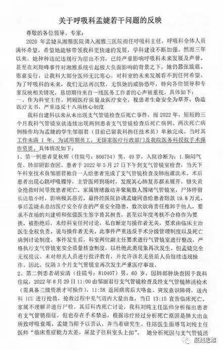 长沙湘雅三医院9名医务人员联名举报科主任