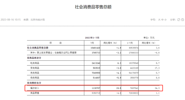 今年1至7月,北京餐饮收入769.75亿元,同比增长34.3%