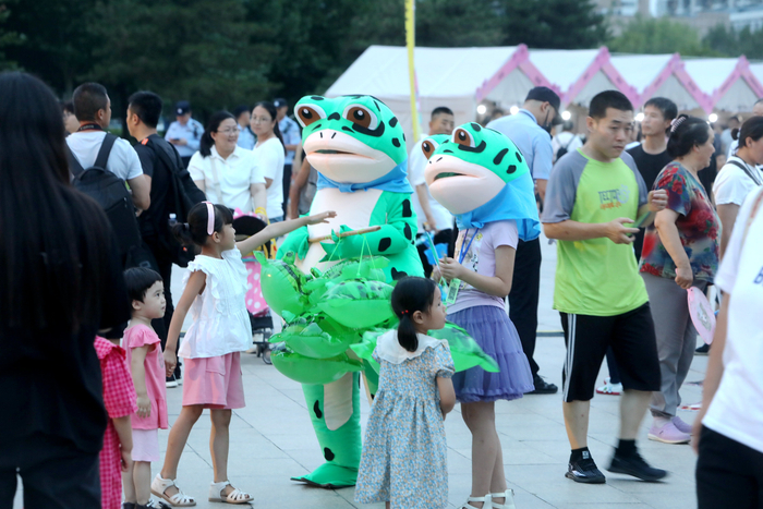 •  在平谷区世纪广场,傍晚的这里呈现出一派热闹的景象,在五颜六色的小棚子中,吃的、玩的、一应俱全。不时间还有舞蹈演出吸引着人们的目光。本报记者甘南摄