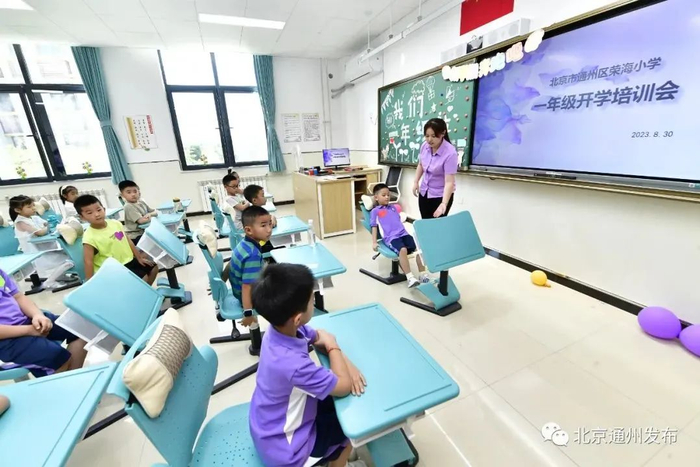 根据通州区教委最新消息,副中心学校再添新成员——位于台湖镇的荣海小学,正式建成并投入使用,昨天已经迎来了首批新生。一起来看看吧~