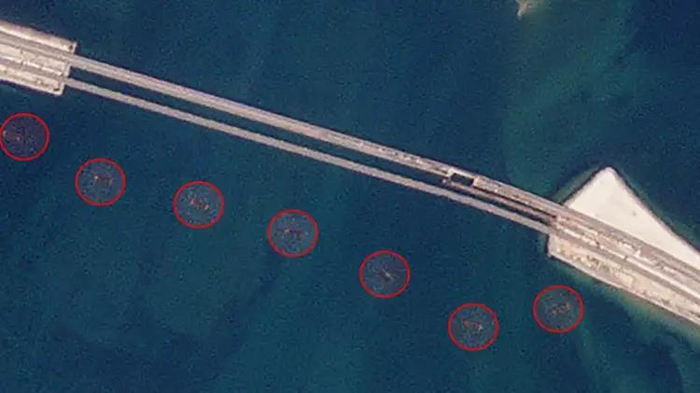 作为连接克里米亚半岛与俄本土之间的交通命脉,克里米亚大桥自修建之初就一直是乌克兰方面的眼中钉,并在俄乌冲突爆发后数次因攻击而受损。而俄军对该桥的保护也不断升级,不但在大桥周围部署了包括S-400远程防空系统在内的多种先进武器,最新卫星照片还显示,俄军憋出了大招——在大桥周围自沉了多达7艘船只,以防备最近活动越来越频繁的乌军自杀无人艇。