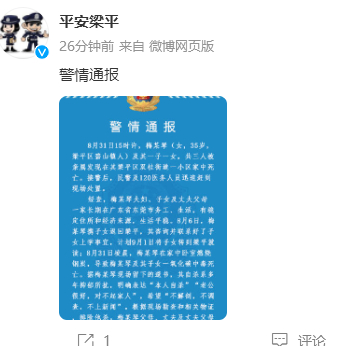 重庆市梁平区公安局官方微博发通报,经查,梅某琴夫妇、子女及丈夫父母一家长期在广东省东莞市务工、生活,有稳定住所和经济来源,生活平稳。8月6日,梅某琴携子女返回梁平,其咨询并联系好了子女上学事宜,计划9月1日将子女转到梁平就读;8月31日凌晨,梅某琴在家中卧室燃烧钢炭,导致梅某琴及其子女一氧化碳中毒死亡。据梅某琴现场留下的遗书,其自杀系多年抑郁所扰,明确表达“本人自杀”“老公很好,对不起家人”,希望“不解剖,不调查,不上新闻”。根据现场勘查和相关物证排除他杀。梅某琴父母、丈夫及丈夫父母对三人死亡原因没有异议。相关善后工作正在有序处置中。