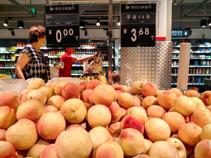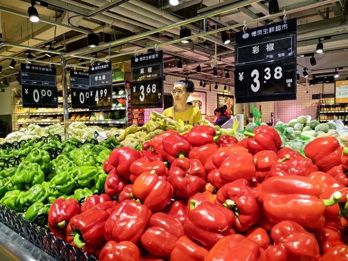 记者了解到,该超市辐射周边众多社区万余居民的生活便利需求,果蔬生鲜商品占据了卖场的主导地位,占比近70%,生鲜水产占比20%。