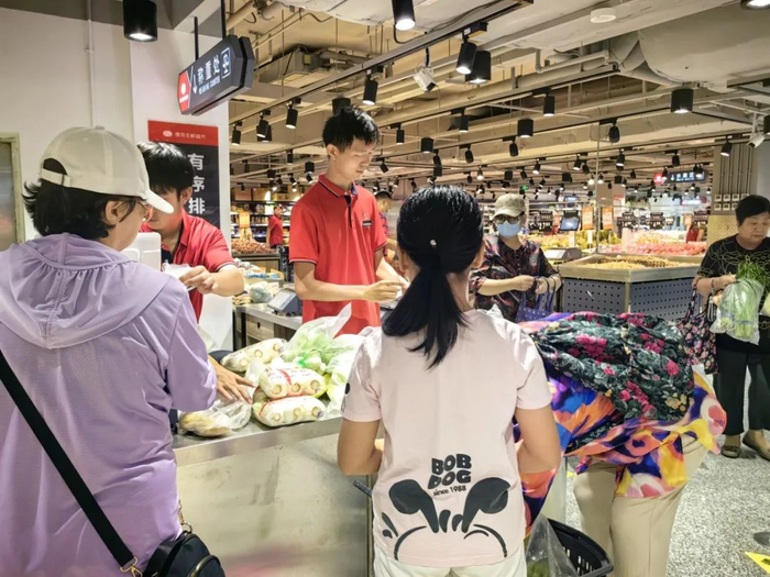 住在附近的高阿姨说:“新开的这家超市真的太方便了!一下楼就可以买到新鲜廉价的蔬菜水果,它们的营业时间也好,我每天一早就来逛逛,跟逛早市似的。”