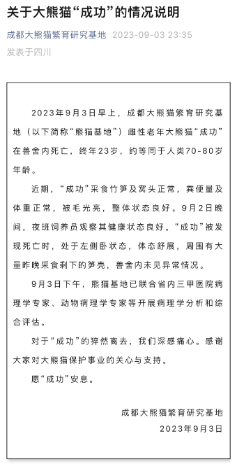 大熊猫“成功”猝然离世,网友伤心:“花花”没有妈妈了