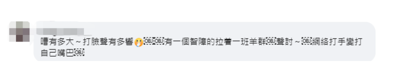 对此,有岛内网民表示,“嘈有多大,打脸声有多响,有一个智障的拉着一班羊群声讨,网络打手变打自己嘴巴。”↓