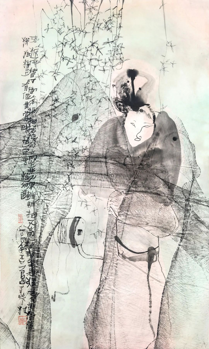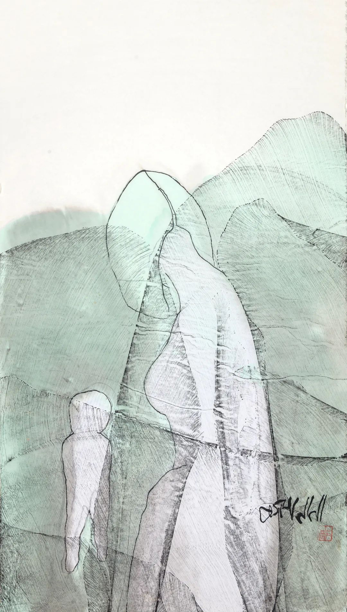 石虎 人物 76cm x47cm 纸本水墨 2012年