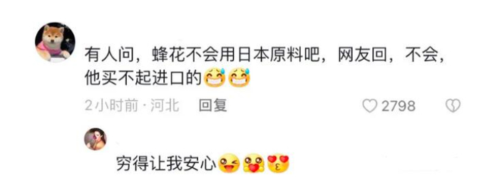 近日,日本核污水排海后,引发消费者对各类产品原料的担心,有网友向蜂花发问“你们家有日本原料吗”,让评论区再度沸腾,蜂花因为被粉丝调侃“穷到用不起日本原料”再度出圈。