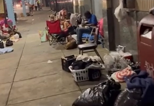 视频显示,街道上随处可见成堆的垃圾,散布在一些临时搭建的帐篷周围。大多数吸毒者没有帐篷,直接睡在成堆的垃圾中间的地上。一些人把随身携带的财物塞进塑料袋、购物车、背包或洗衣篮里。还有一些人,除了身上的脏衣服,似乎没有什么财物。