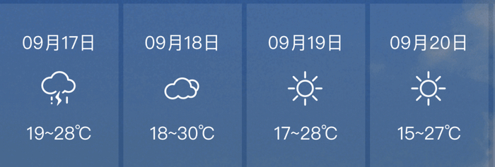 市气象台16日6时发布:今天白天多云,西部北部有阵雨或雷阵雨,北转南风二三级,最高气温28℃;夜间多云,南转北风一二级,最低气温19℃。双休日天空云量逐渐增多,今天白天西部北部有阵雨,周日大部分地区有雷雨,外出携带雨具,及时关注临近天气预报,注意出行安全。