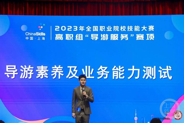 文旅市场明显复苏,新一代导游如何满足市场新需求?近日,由教育部等部委主办的2023年全国职业院校技能大赛高职组“导游服务”赛项在上海举行,来自全国各地的61支队伍237名选手站上舞台,展现他们的风采。经过两天的对决,重庆商务职业学院文化旅游学院的李春呈同学凭借出色发挥,荣获大赛一等奖。
