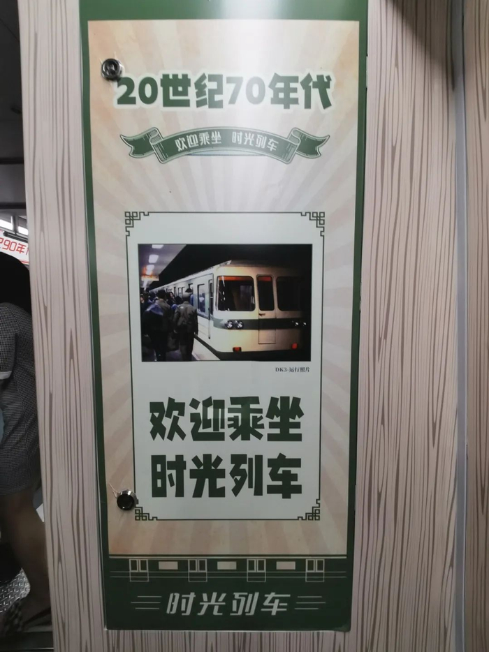 地铁主力车型也在不断发展。本次时光列车首尾两节车厢复刻的是1971年首批使用的DK3型列车。其余四节车厢分别为上世纪90年代上线的DKZ4型车、北京奥运期间使用的DKZ15型车以及现在S1线上行驶的磁浮列车。