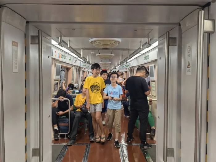 上绿下白的时光列车一进站立刻成为焦点,一脚踏入车厢瞬间“穿越”50年。绿色软皮座椅、白色车顶风扇、棕色地板,这趟列车的首尾车厢布置成上世纪70年代的样子。乘客李女士说:“这样的地铁车厢只在电视上见到过,一走进来还以为在拍电影呢,坐在复古车厢里看着外面的高楼大厦,感觉太奇妙了。”