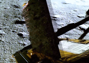 ISRO发布的“普拉吉安”月球车驶离着陆器画面