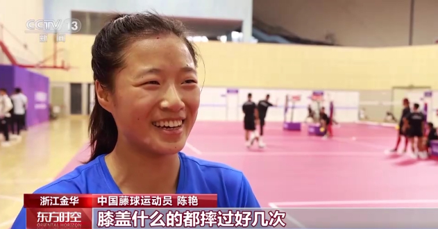 中国藤球运动员 陈艳:以前小的时候摔过好多回,膝盖什么的都摔过好几次,你得找到那个球的结合点,才能打得到球。