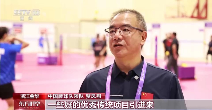 中国藤球队领队 贺凤翔:让我们全国人民所了解和熟知,同时我们体育总局也致力于把其他国家、其他地区、其他民族的,一些好的优秀传统项目引进来,在我们国家推广。