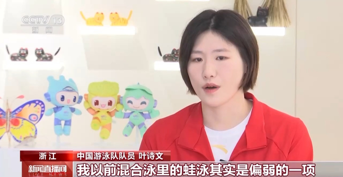 中国游泳队队员 叶诗文:我以前混合泳里的蛙泳其实是偏弱的一项,我就想说我要不要从蛙泳开始恢复。哪怕我今天只跟上了400米,我明天就要跟上600米,我就是一天比一天有进步。