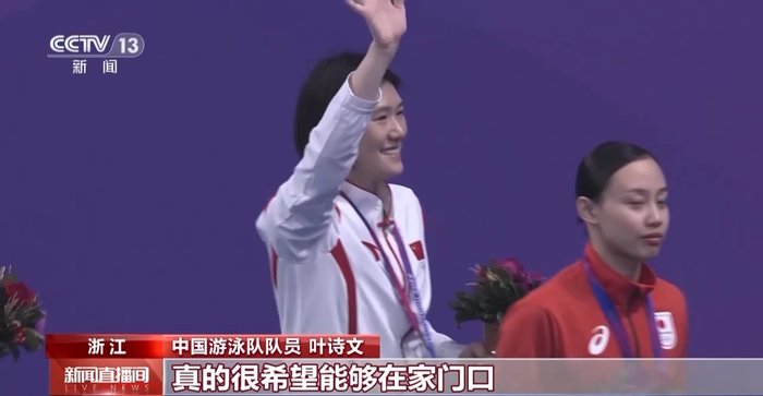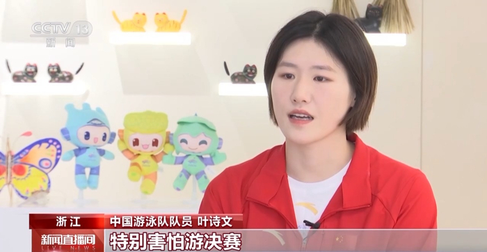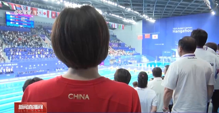 在杭州亚运会游泳比赛的最后一天,已经提前结束所有比赛项目的叶诗文和队友们,早早来到看台上,为泳池里的选手们加油、鼓劲儿。注视五星红旗升起,聆听国歌奏响,叶诗文说,那一刻是她跃入泳池,全力以赴,追逐梦想的无穷动力。