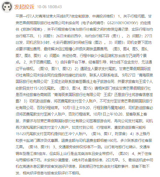 有用户投诉甘肃芒果假期国际旅行社有限公司称,在该旅行社报团出游出现众多问题。实际行程与约定不符,缺少约定景点游览,司机迟到导致游玩时间缩短,变更下团地点要求增加费用,胁迫旅客将团费尾款支付至个人账户,否则行程结束,出行车型、住宿、用餐标准均不符,甚至在送机途中司机在高速休息区要求旅客发送好评信息。