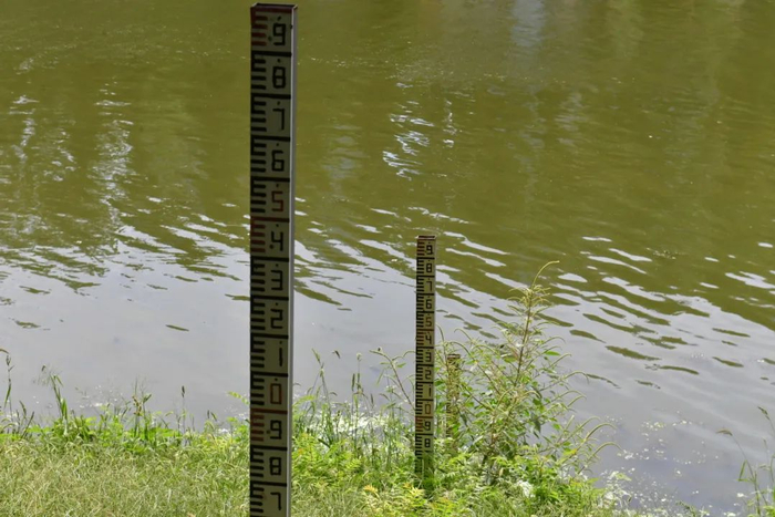 随着科技发展,第二代水泥桩水尺逐渐取代了初代木桩水尺。水泥桩水尺密度大,弥补了容易被水冲走的缺陷,却又出现了新问题。“水泥桩在水里时间长了,会被水流冲歪,因为水泥柱太沉了,冲歪以后想要扶起来太难了。”龚义新说,如今使用的已是第三代水尺,使用重量轻、硬度大的不锈钢,在底部浇筑水泥基础,方便又精确。