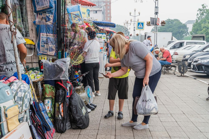 俄罗斯居民在布拉戈维申斯克“三只鲸鱼”中国市场购物