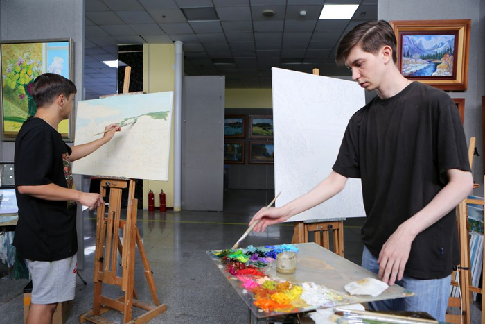 来自俄罗斯的老师在黑河俄罗斯油画城作画
