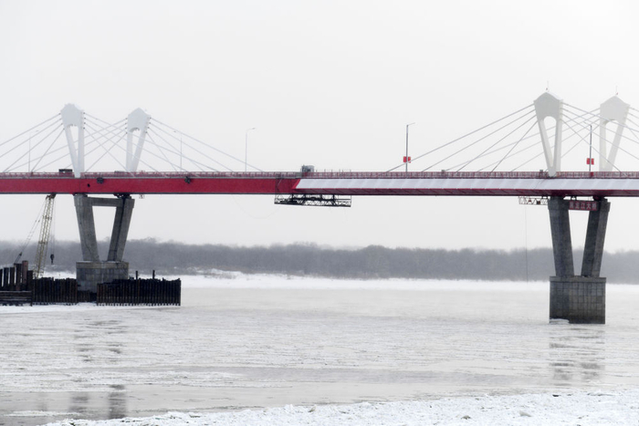 整座大桥全长1284米、宽14.5米,主航道跨径147米,在中国东北地区和俄罗斯远东地区之间开辟新的国际运输通道,成为中俄跨境互联互通建设的标志。