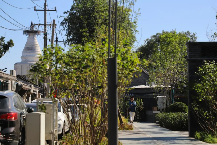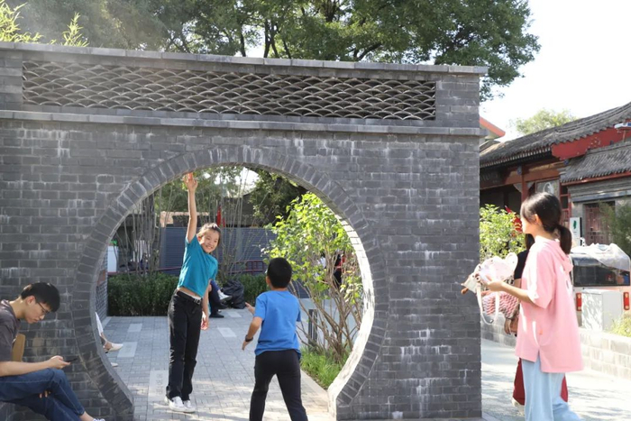 “莳花园”不仅服务周边居民,同时回应与鲁迅博物馆和白塔的空间关系。公园内由月洞门划分文化展示区和休闲活动区,丰富游园体验,远借白塔,可以网红打卡。沿胡同道路设置种植池形成绿色开放街景,进一步恢复提升阜景街风貌。公园设计营造全龄友好胡同花园休憩空间,既可远眺白塔,亦可林下健身,与周边居住区动静相隔,提升胡同居民绿地服务半径覆盖率。