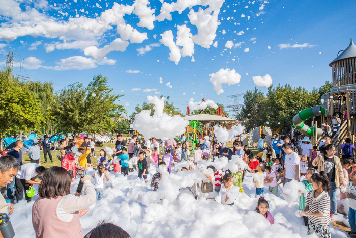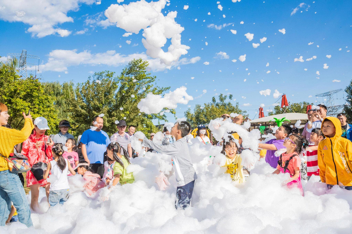 记者翻看某第三方平台软件看到,目前两大一小的周末票价为75元,园内分布着几十处滑梯和百米长树屋,并可免费搭帐篷,近年来多次被评为网红打卡地,适合全家周末出游,在园内还可远眺千灵山整个山体风景。
