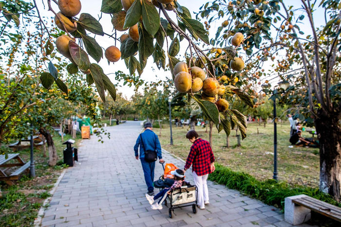 丰台王佐绿野仙踪游客入园免费摘柿子,配有专业工具“帮摘”