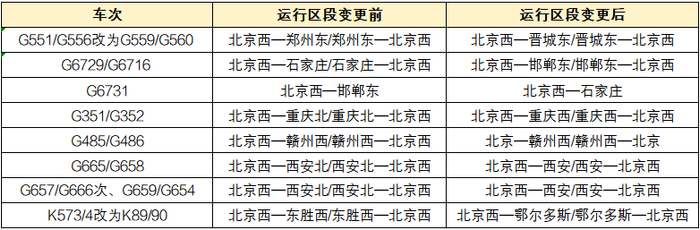 北京西站始发列车,变更运行区段8.5对。