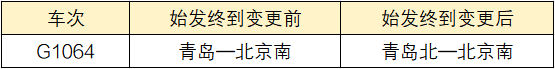 G1064次变更为青岛北站始发。