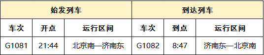 新增北京南——济南东高速动车组列车1对,车次为G1081/G1082次。