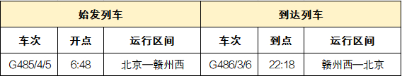 新增北京——赣州西动车组列车1对,车次为G485/4/5、G486/3/6次。