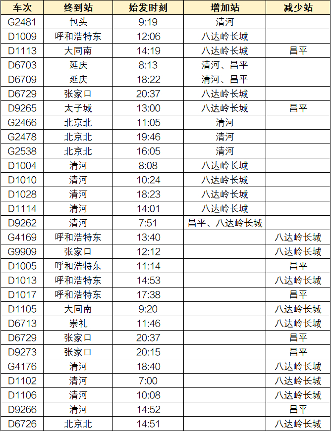 转发+收藏!今日起,北京这些火车站开行列车有变化
