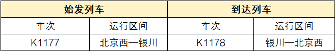 银川——北京丰台K1178/K1177次列车改为北京西终到始发。