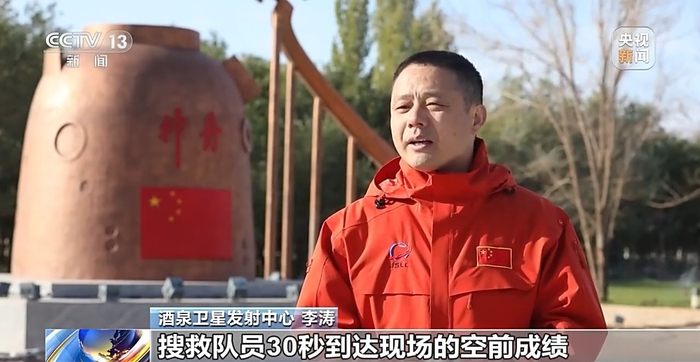酒泉卫星发射中心 李涛:我们实现了飞船着陆后,搜救队员30秒到达现场的空前成绩。我和杨利伟我们俩同时打开舱门,简单地握了个手以后,我就投入后续工作,非常荣幸能够见证首飞英雄凯旋,载人航天事业蓬勃发展。