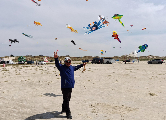 丹麦西陲,绵延数公里的白沙海岸边格外热闹,形态各异的风筝翱翔在天际。6月10日至24日,一年一度的丹麦凡岛国际风筝节开幕。这是欧洲地区参与人数最多的风筝节之一,每年吸引着超过5000名来自世界各地的风筝爱好者来此交流切磋。与往年不同的是,数百只来自中国的传统风筝穿越山海而来,吸引了世界爱好者的目光。