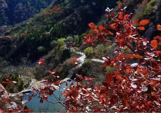 三、红叶大峡谷。主要红叶树种为黄栌、元宝枫、栾树等,面积约为600亩。