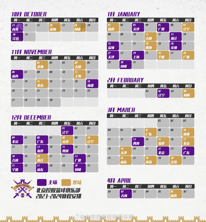 北控CBA常规赛赛历: