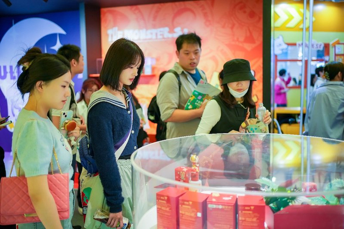 “我到不同的门店会遇到不同的粉丝,有些是熟悉的老顾客,有些是新粉丝。新粉丝其实不会刻意选购某个特定IP,只要是觉得设计和包装符合他们的审美,他们就会抽选。而老粉丝对自己喜欢的IP已经形成了一定的忠诚度,会特地购买喜欢IP的新产品和衍生品。”王思是一位在泡泡玛特门店工作了12年的老员工。在接受第一财经记者采访的当天,她刚完成了一天的巡店工作,从上海前滩太古里门店到美罗城门店,再到环贸门店和打浦桥门店。