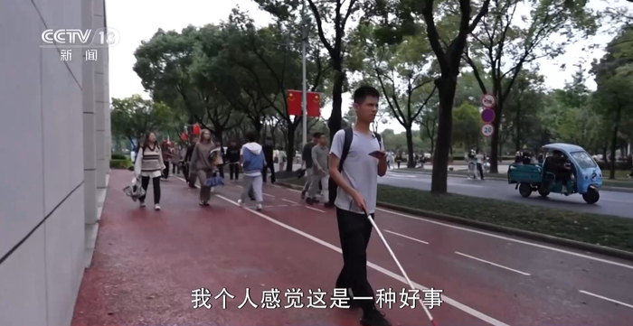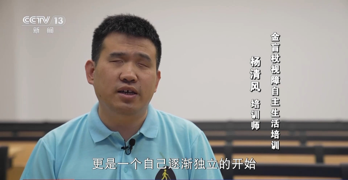 全盲杖视障自主生活培训培训师 杨清风:在我们看来,一个视障者从大学开始,不仅是一个新学段的开始,更是一个自己逐渐独立的开始。如果我们有一颗独立的心,你就会有意愿去学习独立出行,去学习独立做一些事情。我们希望通过这样一个环境,更重要的是给大家一个独立的氛围,看到自己未来独立的可能性,不仅会用于他在大学的信心,也是他独立融入社会的基础。