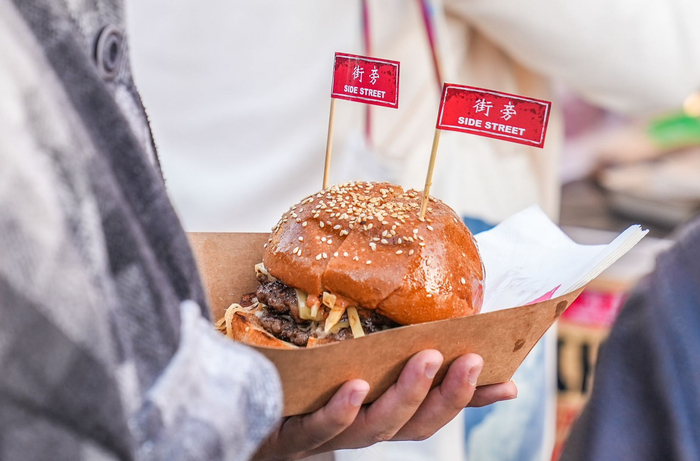 此外,“火焰山牛魔王”牛肉汉堡、“手撕二师兄”手撕猪肉堡等趣味性活动主题限定汉堡,吸引不少食客现场拍照打卡。大跃、京A等本土品牌和虎滋、本楼、鹅岛等新晋汉堡品牌的烟熏汉堡、素食汉堡等创新产品,也体现出西方美食和本土文化充满创造力的融合与创新。