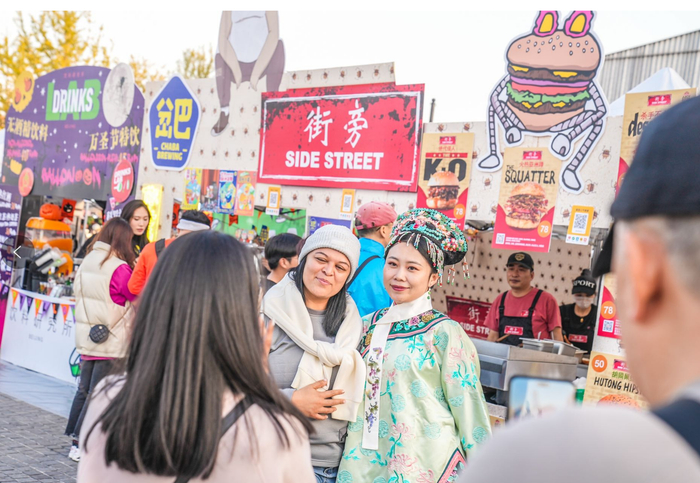 10月27日傍晚, 2023北京国际鉴堡大会在位于四惠附近的西店记忆黑糖广场举行。今年汉堡节以西游记为主题,“火焰山牛魔王”牛肉汉堡、“手撕二师兄”手撕猪肉堡等主题汉堡集体亮相,40多家北京知名汉堡展商和精酿啤酒品牌将带来超过100款不同风格的汉堡。汉堡节为期三天,从上午11点持续到晚9点。