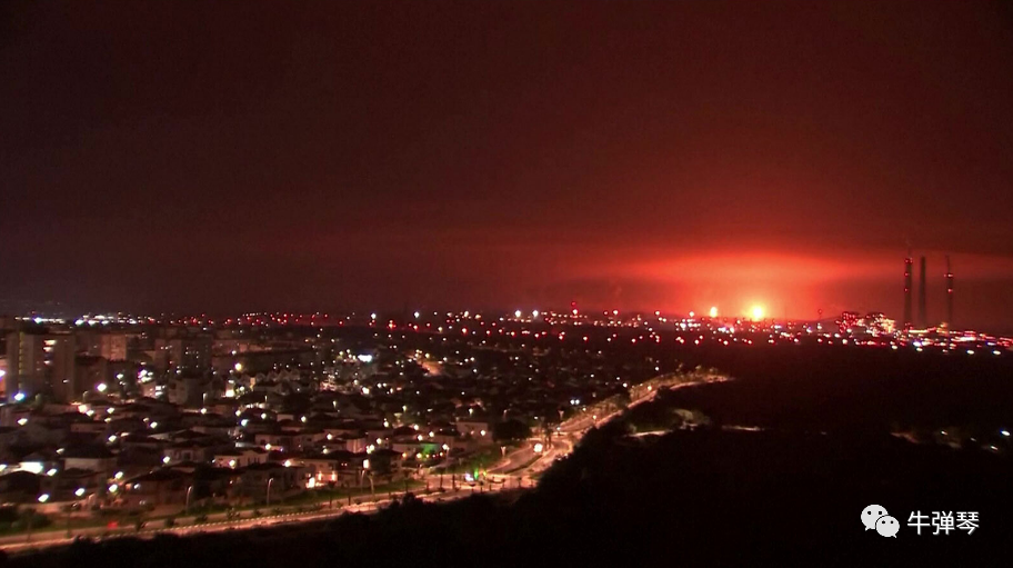 从以色列一侧看加沙,以色列这边,灯光点点;加沙那边,火光冲天。