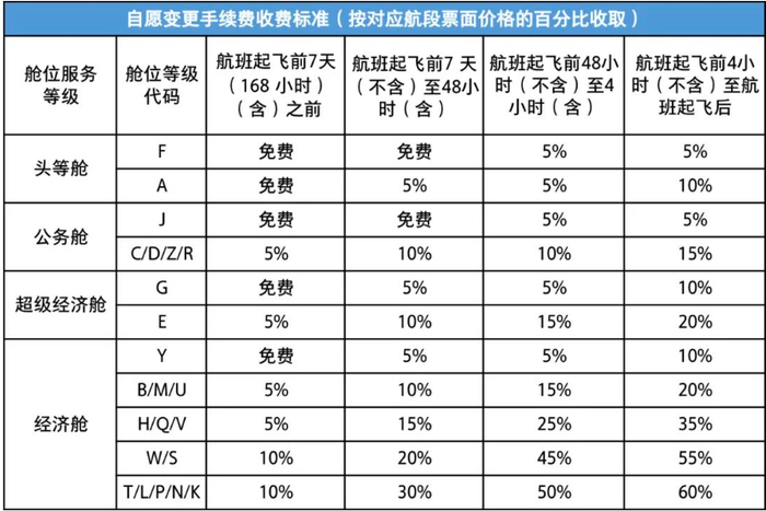 二、调整部分舱位的退改手续费。具体请见购票页面显示的收费标准。