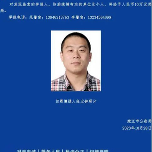通报还提到,对发现线索的举报人,协助缉捕有功的单位及个人,将给予人民币10万元奖励。